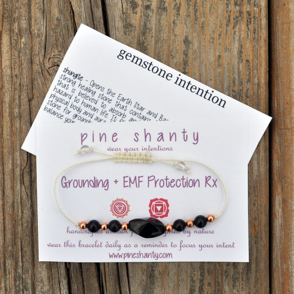 The EMF Protection and Grounding adjustable bracelet is made with a combination of Shungite and Copper beads. They will help shield your aura from harmful EMF energies and ground unwanted negative energies.